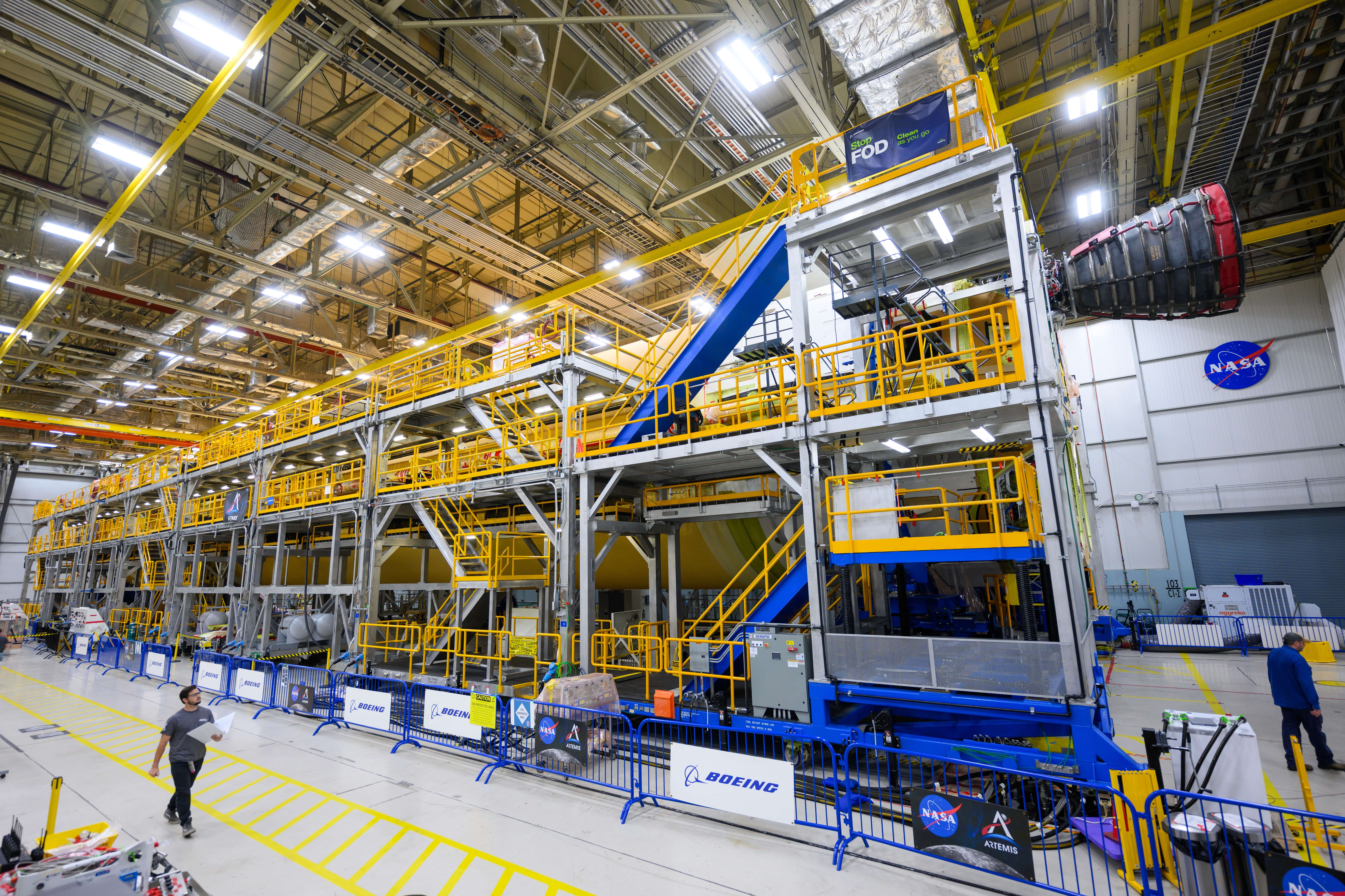 Technicians at the Airbus facility in Bremen, Germany prepare the European Service Module for shipment to Kennedy Space Center on Nov. 1, 2018. Image Credit: NASA/Rad Sinyak