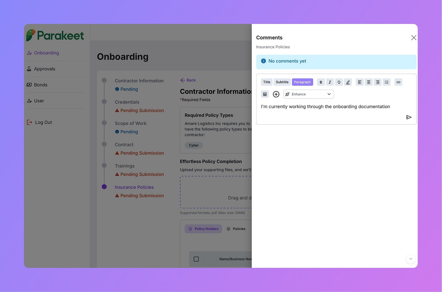 Managing contractor compliance can be overwhelming—juggling spreadsheets, chasing missing insurance certificates, and coordinating onboarding across email threads. Parakeet Risk eliminates this chaos!