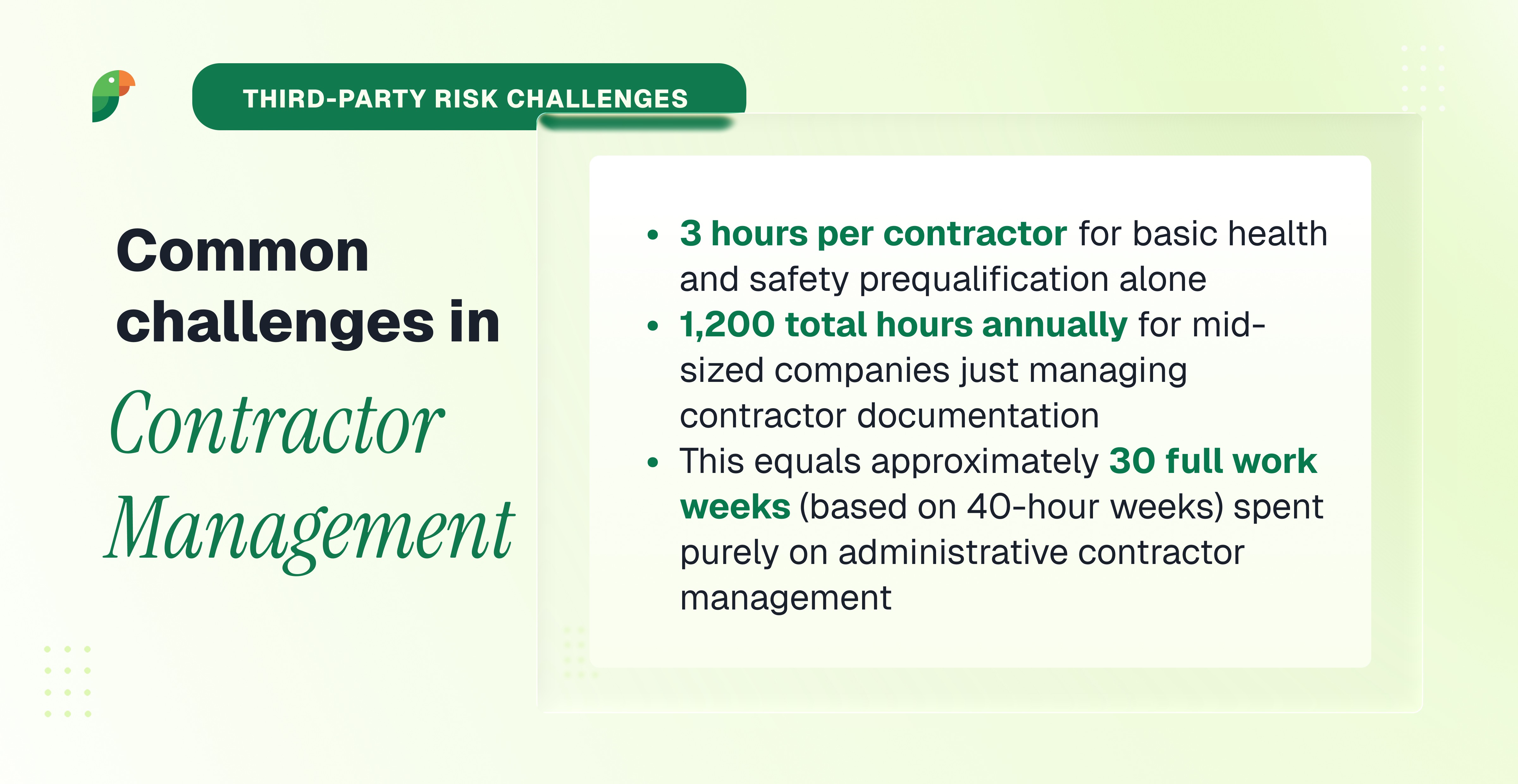 Manual contractor management doesn't just waste time—it creates systematic risk. When safety managers spend 1,200 hours annually chasing paperwork instead of evaluating actual hazards, critical threats slip through.