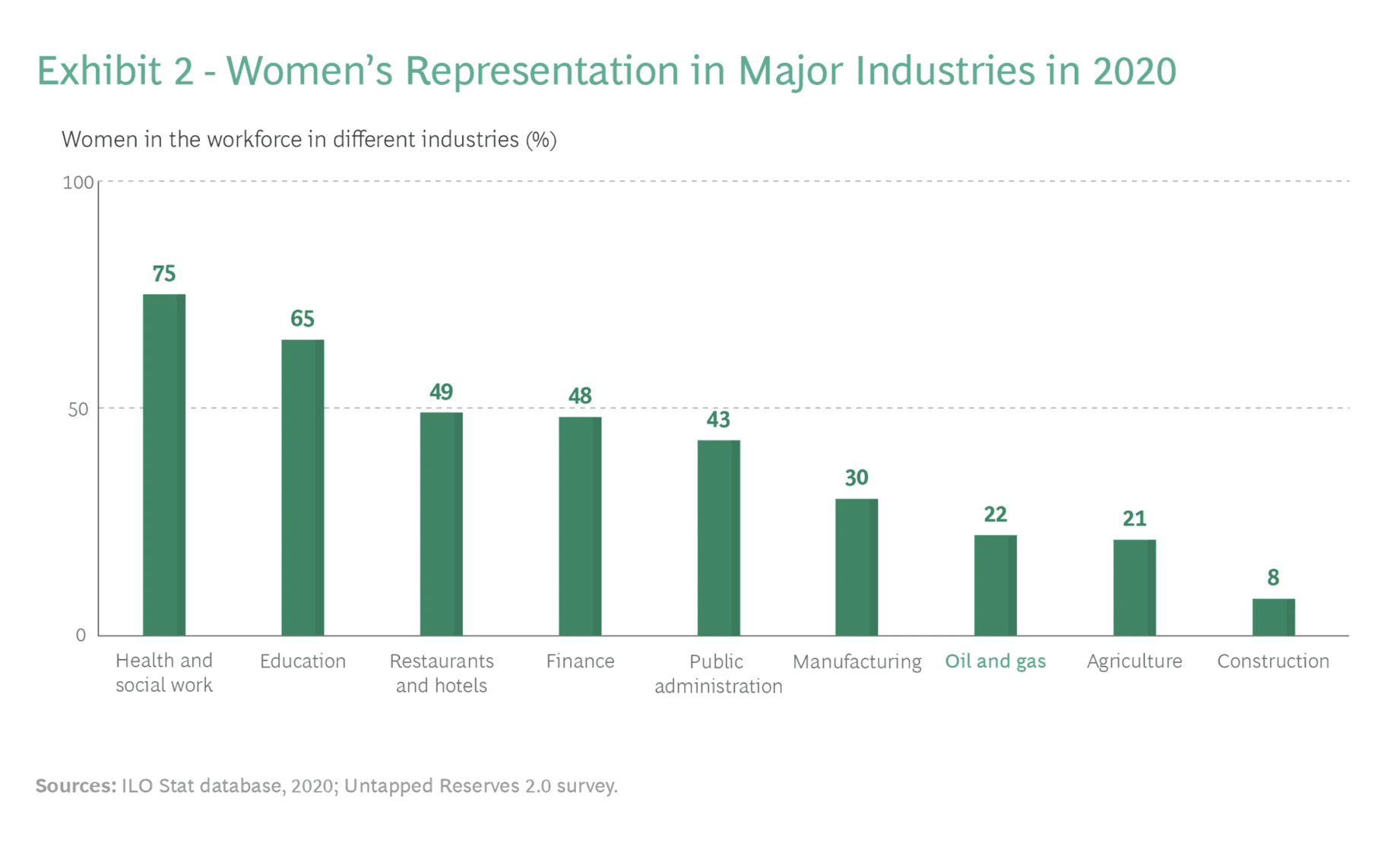 Globally, women account for just 22% of the oil and gas workforce, a figure that has been essentially unchanged since 2017.